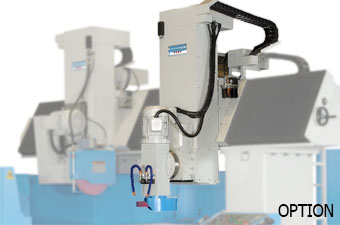 The optional NC auto parallel dressing & compensating system is available to equip with an optional NC auto down feed system (AD5 type), greatly increasing the grinding efficiency.